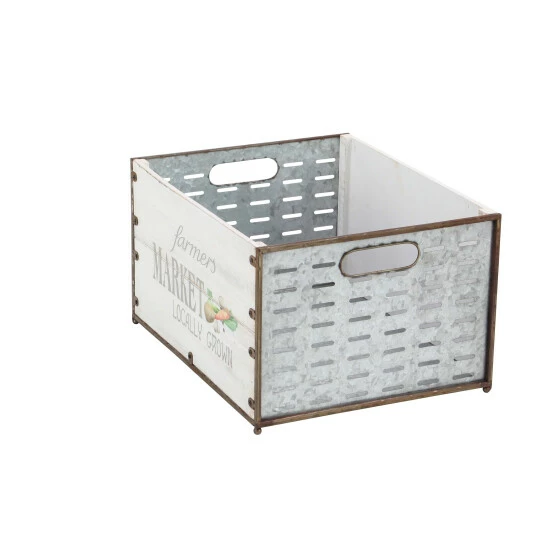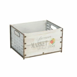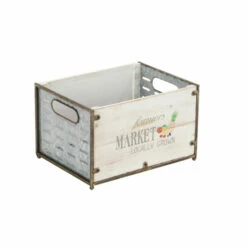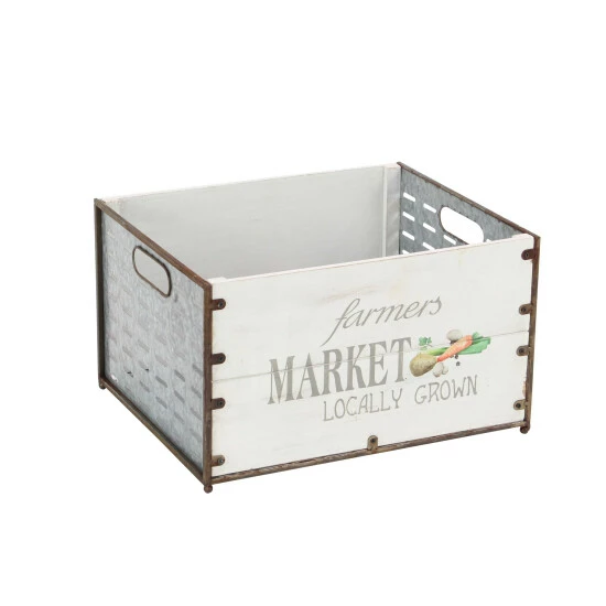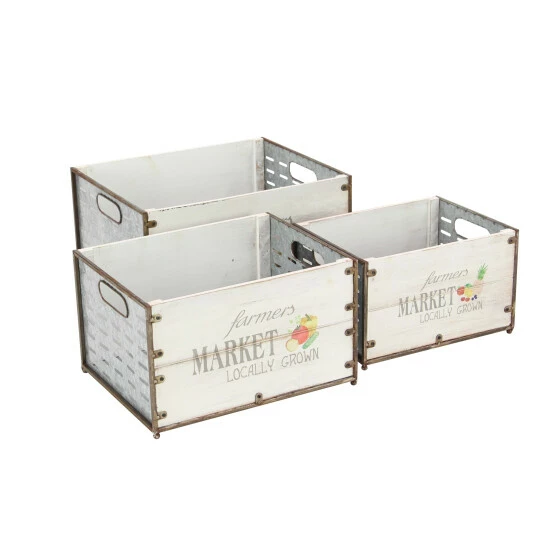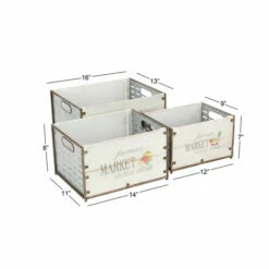 This set of three market crate planters offers wide opening and deep setting to accommodate most type of plants. Made of iron and fir materials, these market crates offers durability and can be used in both indoor and outdoor. With its brown-outlined white panels and printed illustrations, these crate planters compliment a contemporary-themed home. Bring these planters home and add style to your floral and ornamental plant display.