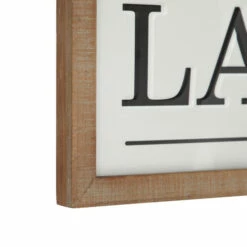 The laundry room may be the most neglected room of the house… That’s why we made charming Farmhouse style laundry signs such as this metal and wood decor! The iron LAUNDRY sign is finished is glossy white paint with the relief lettering finished in dark brown paint. Above “LAUNDRY” read “SELF SERVICE” and beneath reads “OPEN 24 HOURS”. It’s constructed with iron, Chinese fir wood, and medium-density fiberboard (MDF) and hangs via two toothed backings. A jute rope also works as a hanging thread with an extra decorative touch. This is a 31″ x 13″ horizontally hanging wall décor.