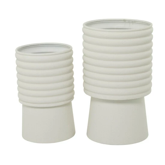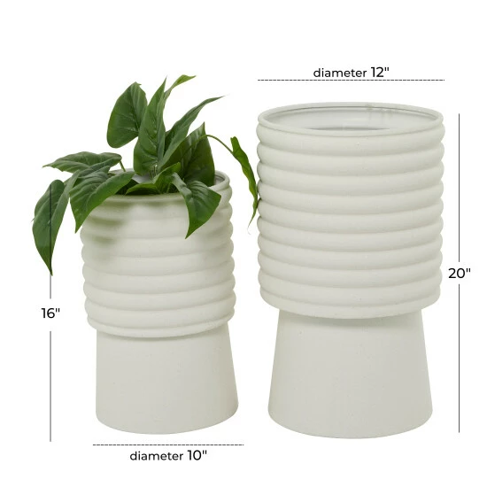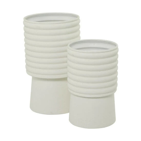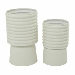 Feature your luscious with this set of 2 planters for an eye catching and refreshing addition to any space in your home. Planter features a deep pot with slender structure making a friendly planter for any compact space. Enhance the mood and the look of your room with some plants in these beautifully designed planter. Shipped in one carton. Suitable for indoor use. These planters has no drainage holes. Set of 2 metal planters. Modern design. Planters do not have drainage holes but they are not watertight.