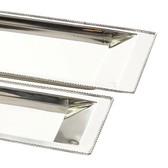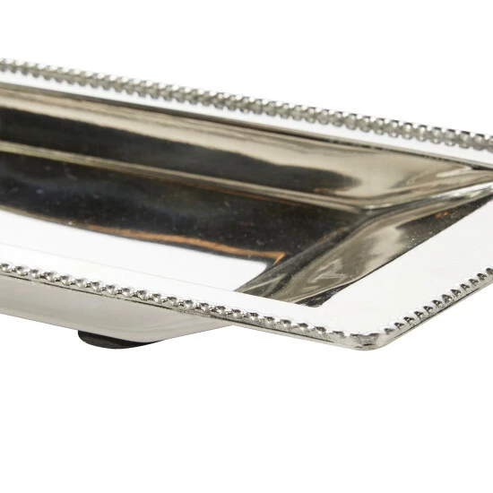 - Originating from India, each decorative tray features a polished surface with fine ribbed rim outline details