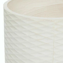 Verdant plants and flowering shrubs provide serene respite in these hectic times. And they need the proper holder to maintain a home’s theme. This set of two planters, crafted from fiber clay with white textured diamond patterns around the bodies, elevates the look of modern and contemporary-style homes and gardens. Place leafy plants and flowering shrubs to highlight the trendy style of gardens, patios, and indoor/outdoor spaces. Great additions to gardens, patios, and outdoor spaces with a modern and contemporary theme Wipe clean with a dry cloth. Suitable for indoor and outdoor use No drainage holes. Set of 2 round fiber clay planters. Contemporary design. This item comes shipped in one carton.