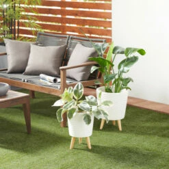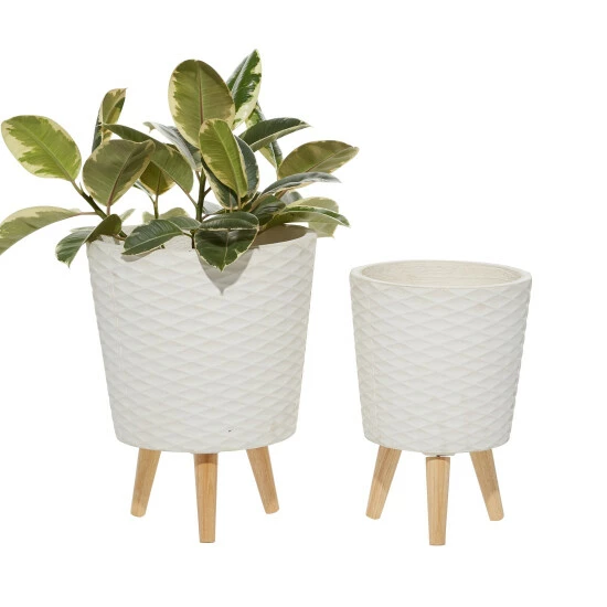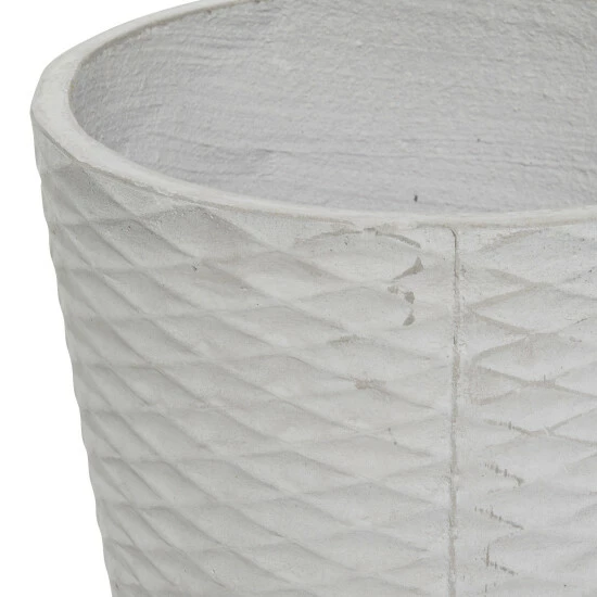 Verdant plants and flowering shrubs provide serene respite in these hectic times. And they need the proper holder to maintain a home’s theme. This set of two planters, crafted from fiber clay with light grey textured diamond patterns around the bodies, elevates the look of modern and contemporary-style homes and gardens. Place leafy plants and flowering shrubs to highlight the trendy style of gardens, patios, and indoor/outdoor spaces. Great additions to gardens, patios, and outdoor spaces with a modern and contemporary theme Wipe clean with a dry cloth. Suitable for indoor and outdoor use. Made in China These indoor planters come as a set of 2. Contemporary design. This item comes shipped in one carton.