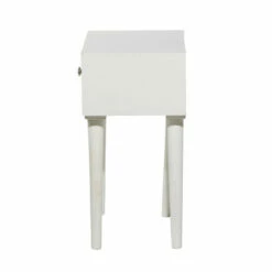 - White side table measures 16″L x 13.5″W x 23.5″H and weighs 16.5 lbs
