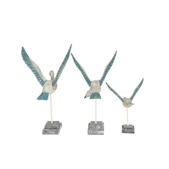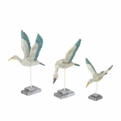 Create an ocean-inspired table decoration with these enchanting sea bird sculptures and place them along with neutral-toned decor pieces and wooden furniture. A sophisticated sculpture with an antique inspired colors adds dimensions and inspiring mood to any space. An artistic display to showcase your personality and enhance the look of any open table top space. Coastal style. These sculptures come as a set of 3. Suitable for indoor use. This item is shipped in one carton.