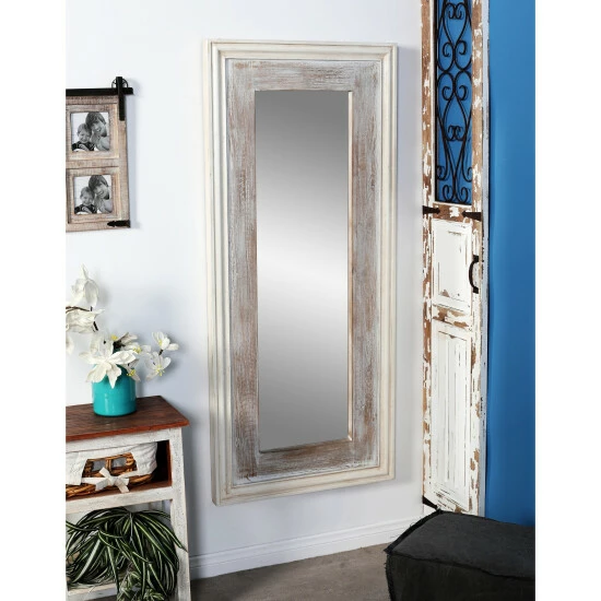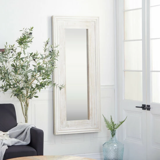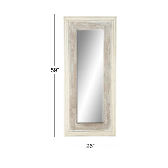 Create an dazzling focal point on your walls with this exquisite floor mirror, and level up your entryway, dining room, bedroom or living room. It makes a great centerpiece over your sofa or console table, or in your dining room or bedroom. Display in bedroom as a vanity mirror either hung or leaning against a wall or in your living room with an accent table to open up your space. This item comes shipped in one carton. Ready to hang with attached D-ring hardware. Suitable for indoor use only. Farmhouse-themed style.