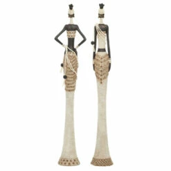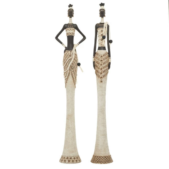 Give your bookshelf, office, night table or coffee table a little whimsy with this sculpture. Let these accent pieces provide a sense of style to your home atmosphere by displaying them on top of a shelf, countertop, mantel, or an accent table. Add this pair of stunning African decor to honor your collection of tribal and African wares, or to bring a worldly, multi-cultural essence into your home or office. These beautiful African women sculptures have lithe, long silhouettes. This item is shipped in one carton. Suitable for indoor use only. This is a set of 2 sculptures. Contemporary design.
