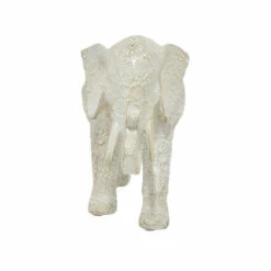 The mighty elephant is celebrated wonderfully in this delicate yet durable sculpture. Tiny details shine out from the opalescent white finish, making for a dazzling piece you are sure to treasure. The proud elephant stands on a base with rubber stoppers beneath to protect your furniture anywhere it is placed.