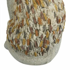 This Zen cat garden sculpture can be placed effortlessly on grass and near flower pots for a captivating cat statue design. Create a playful and inviting outdoor setting in the most stylish way. Add a splash of personality with a charming appeal into your outdoor setting. This item is shipped in one carton. Suitable for indoor and outdoor use. Farmhouse style.. Enhance your farmhouse look with classic comfort style and a touch of cozy appeal. This cat sculpture is made of lightweight polystone and fiberglass materials. This playful cat garden statue features a textured white stone finish designed with multi-colored fiberglass stones in orange, black, yellow, and maroon. This cat garden sculpture features a delightful fur designed with various colored stones and an endearing cat face in a poised sitting position. This item measures 7.2″L x 6.2″W x 14″H and weighs 4 lbs