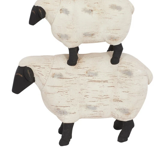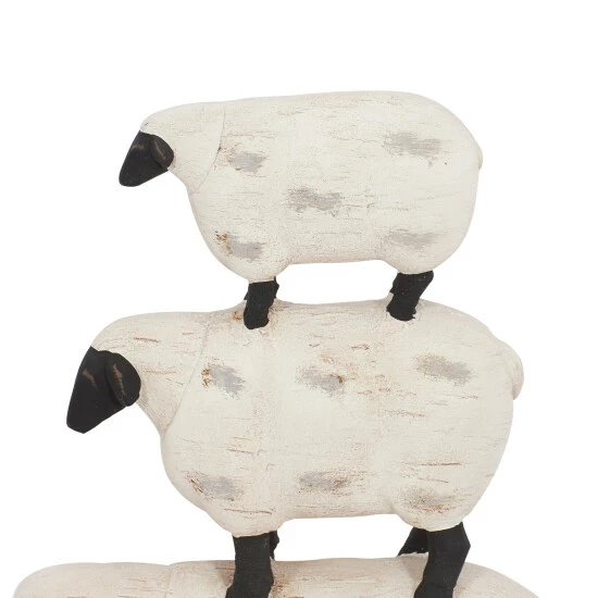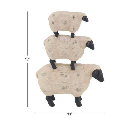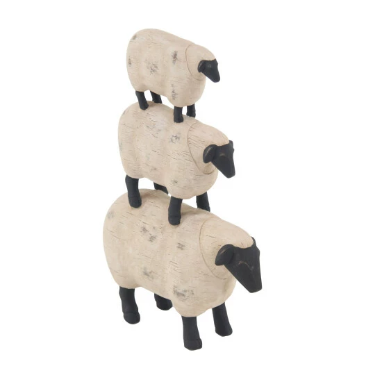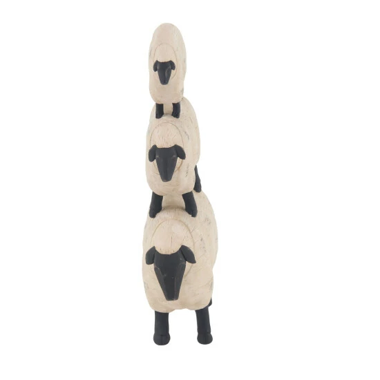 Take your home decoration to the next level with this stacked sheep sculpture. This figurine is bound to impress your guests with the stunning design and the optimistic atmosphere it provides. Made of polystone, this accent piece features sheep figures with off-white bodies and black heads and hooves. This incredible accent decor piece will definitely enhance your home with a perfect mix of form and function. Place this in the lobby, entryway, living room, or bedroom to provide a farmhouse style to your space. Place this in the lobby, entryway, living room, or bedroom to provide a farmhouse style to your space. Designed with black rubber stoppers at the base that prevent scratching furniture and table tops, as well as sliding around. Wipe clean with a dry cloth. Suitable for indoor use only. Farmhouse-themed style. This item comes shipped in one carton.