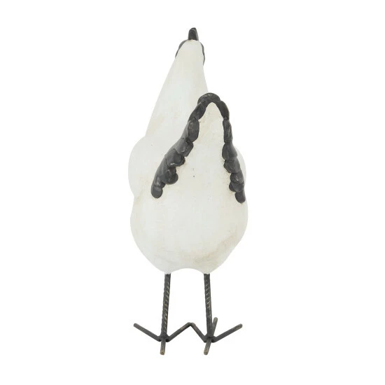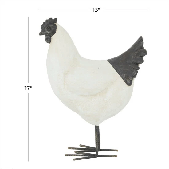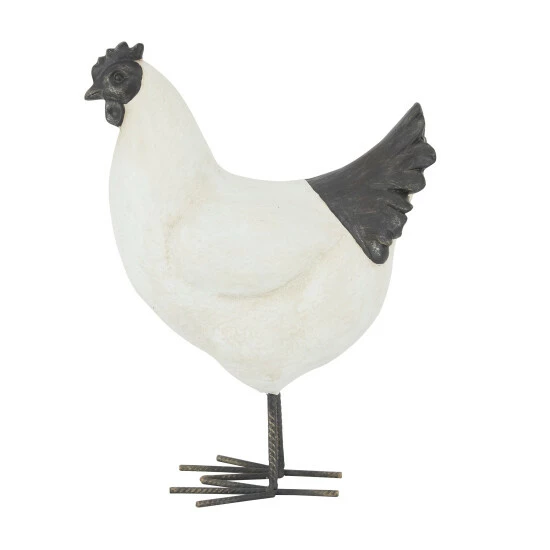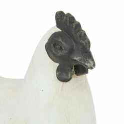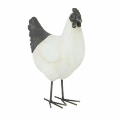 This playful chicken sculpture can be placed effortlessly on grass, stone pavements, and beside potted plants for a remarkable garden chicken design. Create a playful and inviting outdoor setting in the most stylish way. Add a splash of personality with a charming appeal into your outdoor setting. This item is shipped in one carton. Suitable for indoor and outdoor use. French country style.. A French country strikes a balance between rustic & elegant. Chicken garden decor is crafted from durable polystone and iron materials. Subtle chicken garden statue features a plain white body with a distressed gray finished head, tail, and feet. Garden chicken sculpture showcases a standing chicken with slim iron rods forming a sturdy base footing for an efficient garden display. This item measures 7.2″L x 13″W x 17″H and weighs 5 lbs