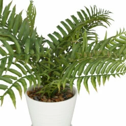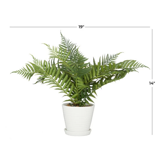 Give your indoor space a refreshing look with this artificial potted fern that adds a pop of color to vanilla-themed rooms. Add some greenery to your dΓ©cor with no keep up effort with these artificial foliage. Add color and textured to your table top with this artificial plant to freshen up your existing dΓ©cor. This item comes shipped in one carton. A porcelain pot holds this artificial plant made of PVC. Suitable for indoor use only. Natural design.