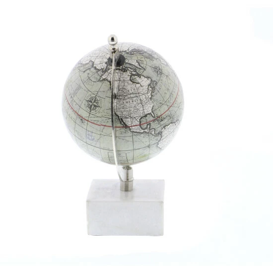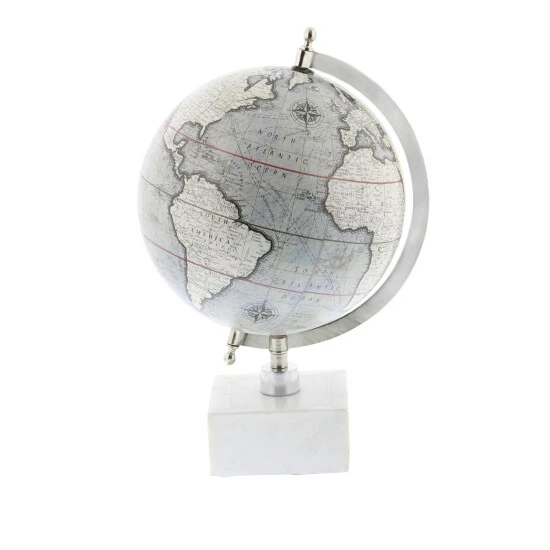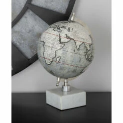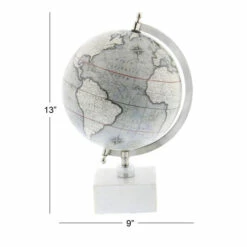 Explore the farthest reaches of the Earth by adding this globe to your home office or study. It has a bright, contemporary design. Whether you’re a seasoned traveler or aspiring wanderer, the globe’s highly detailed surface offers a great way to learn about geography. The decor rests on a white stoneware base, which adds elegance and stability. Designed with black rubber stoppers at the base that prevent scratching furniture and table tops, as well as sliding around. This item ships in 1 carton. The world globe come in 3 size choices 5″, 7″ and 9″ in diameter. Suitable for indoor use only. Made in India. Contemporary design. PVC globe makes a great gift for any occasion.