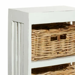 Organizing isn’t boring when you have an amazing storage unit at your disposal. Filled with shoes, books, blankets and more, these storage units are a stylish and convenient way to store your stuff. Wipe clean with a dry cloth. Maximum weight limit is 75 lbs. , each drawer can hold up to 20 lbs. Country Cottage design. This item ship in one carton.. Designed with a country cottage inspired theme for a calming and relaxing vibe. Features a distressed white finish and a natural rattan fiber finish. This charming storage cabinet is made of pure mahogany wood and comes with two rattan baskets. This chic storage cabinet is perfect for minimalist, farmhouse, and coastal-themed home interiors. Item measures 16.5″L x 9.6″W x 35.8″H and weighs 23 lbs
