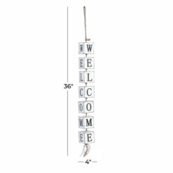 Create an excellent focal point on your walls paired with some cute accent tables, and level up your home with this amazing wall Decor. It makes a great centerpiece over your sofa or in your dining room. This versatile wall art can hang in any room or hallway. This item comes shipped in one carton. The rope forms a loop, allowing you to easily hang the decor virtually anywhere. Suitable for indoor use only. The blocks spells out, “Welcome,” reminding you to take it easy. Coastal design.