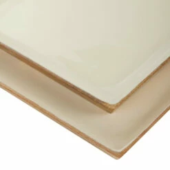 - These decorative trays highlight an alabaster white enamel top finish with natural wood outline details