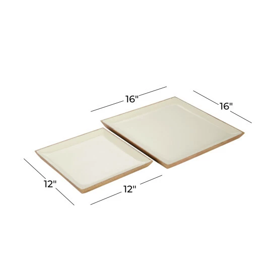 Get organizing and decorating an elegant vibe with these contemporary-themed decorative trays placed on your counters or console tables. Whether in your kitchen, or on your coffee table, it’s a great way to display and store your favorite things. A storage piece that is spacious for your trinkets or decorative goods on your mantle, coffee table or kitchen counter. This item comes shipped in one carton. Please note that this item is for decorative purpose use only and are not food safe. Suitable for indoor use only. Made in India. Each set comes with 2 decorative trays. Contemporary theme.