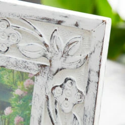 Enjoy this 9″ x 11″ elegant antique picture frame in your foyer, living room, or bedroom to beautifully display your wedding, family photos, and art prints, or at your business as a down-to-earth way to display signage. hand-carved floral detail adds an ornate touch and the whitewash wood finish is soft and versatile with a lovely vintage look.
