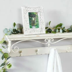 - Rich textural floral detail with hand-carved wood flourishes with a soft, neutral whitewash finish; .5″ wide frame