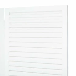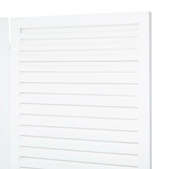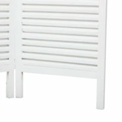 - Minimalistic white 3 panel room divider features classic wooden screens with hinged metal sides and six sturdy short feet
