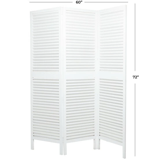Add depth to your spacious living rooms and home offices with this large wooden screen divider and style it up with wicker baskets and nude toned furniture pieces for that delightfully relaxing cottage vibe. The best way to break uneven spacing in your home and create depth in a wide open floor plan. Create privacy within your home in the most efficient and stylish way with this room divider screen. Suitable for indoor use. Made in India. This room divider features 3 wooden screens panels. Modern farmhouse style. This item comes shipped in one carton.