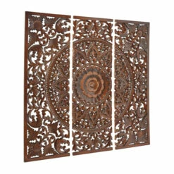 Create the ultimate focal point wall art as you hang this 3-set wooden panel on spacious walls with plenty of light and other breathtaking wooden furniture pieces. Maximize your open wall space with this eye catching wood wall decor. An extravagant display in a captivating design to elevate the look of your home. This item comes shipped in one carton. Due to the handmade nature of this item, no two will be alike, there will be slight differences in shape, size, and color. This item comes with metal hardware at the back for easy hanging via nail or screw. Suitable for indoor use. Made in India. This item comes as a set of 3. Bohemian style.