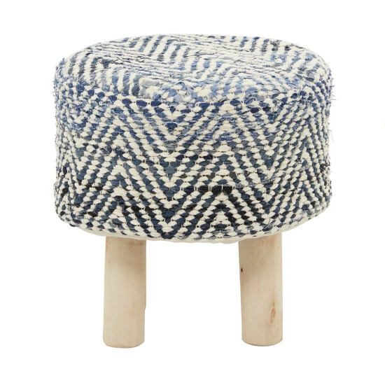 - Our bohemian foot stool showcases a round shaped cotton fabric woven base and four wooden feet