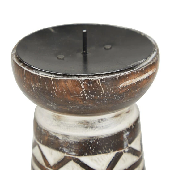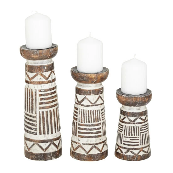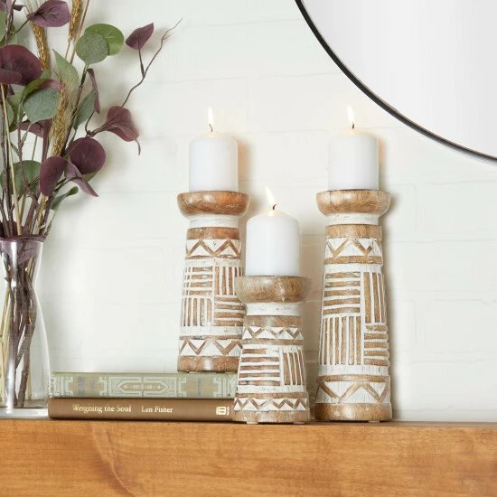 Give your space a radiant illumination with these beautifully crafted candle holders. Made with a sturdy base, it is perfect for creating an elegant atmosphere at your table top or mantel. Delight your guests by adding lighted candles to this impressive set of candle holders that can make any occasion extra special. Designed with white rubber stoppers at the base that prevent sliding around as well as scratching the table. This candle holder set can hold votive or pillar candles. This item ships in 1 carton. Due to the handmade nature of this item, no two will be alike, there will be slight differences in shape, size, and color. Suitable for indoor use only. Made in India. This set comes with 3 candle holders. Eclectic Design.