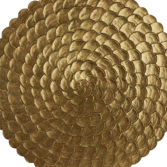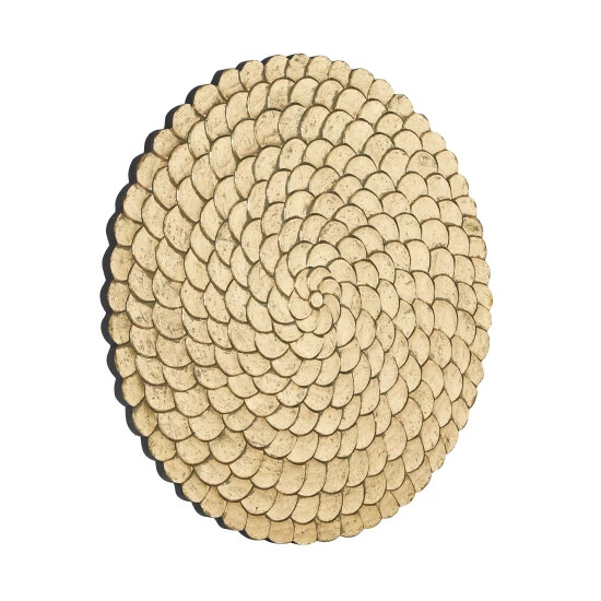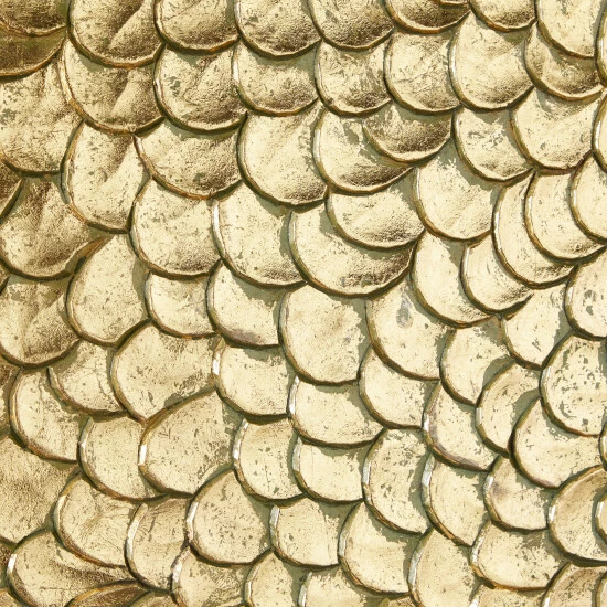 - A gold or silver abstract wall decor consisting of a square structure furnished with raised scale-patterned design