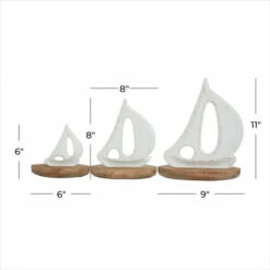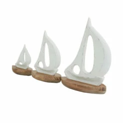 - This charming 3-set boat sculpture features abstract-style sailing boats in small, medium, and large