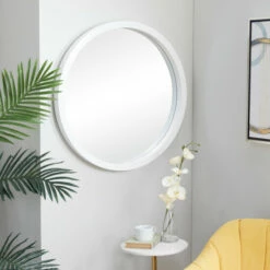 For giving a polished look and creating an illusion of a larger space, this framed mirror is a great addition to your living room or bedroom space Create an dazzling focal point on your walls with this exquisite wall mirror, and level up your entryway, dining room, bedroom or living room.. Wall mirrors offer a reflective property that helps naturally brighten up any room in your home This item is shipped in one carton only. Easy display with 2 D-ring hanging hooks Suitable for indoor use only. Contemporary
