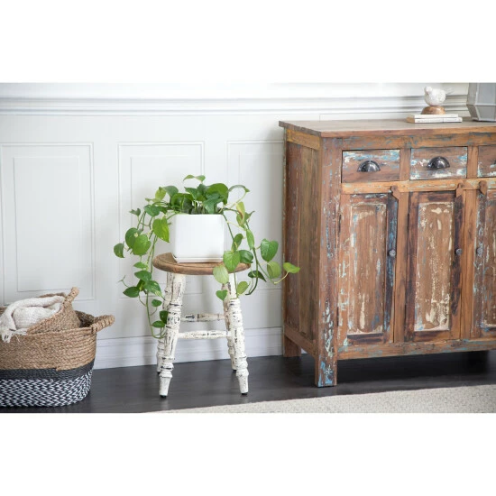 This versatile piece will be a great addition to your farmhouse or country style home with light solid-colored backgrounds. Whether placed in your home office, living room, lobby, or game room, this decorative stool provides a chic and welcoming look. Made with a sturdy base, it is perfect for creating an inviting atmosphere for you and your guest. Designed with black rubber stoppers at the base that prevent scratching furniture and table tops, as well as sliding around. Seat top thickness measures 1″. Suitable for indoor use only. Maximum weight limit is 150 lbs. This stool sits 1 person. Farmhouse-themed style.