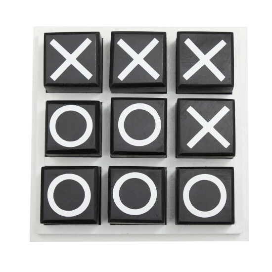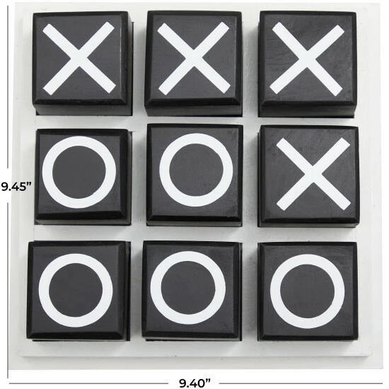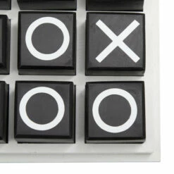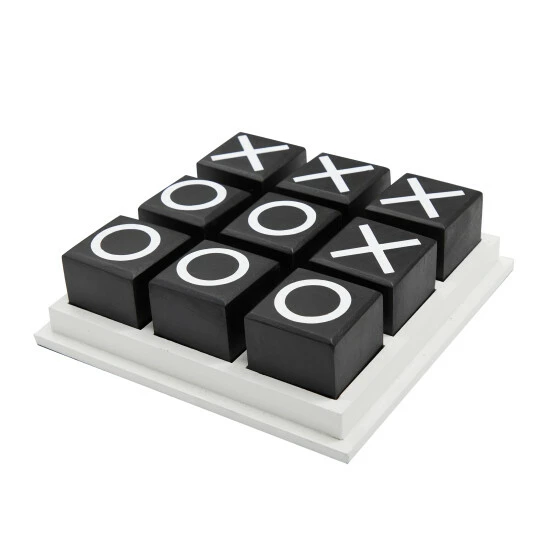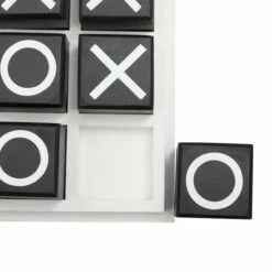 - Tabletop tic tac toe game features classic black and white combination