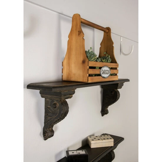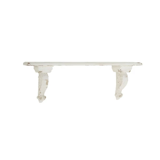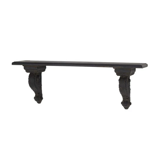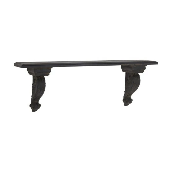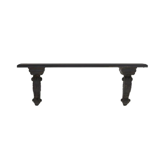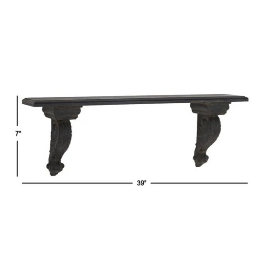 Show off your favorite family photos and other mementos with this wall shelf from Studio 350. Crafted from fiberglass and fir wood materials, this wall mounted display shelf features a spacious rectangular panel and baluster-inspired bottom braces designed with scroll carvings. It comes with a brown finish that creates a dark contrast to your light colored walls. Easy to install on most wall types, this wall shelf offers a stylish display option. Get yours now today!
