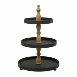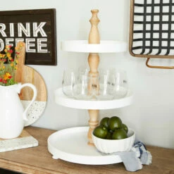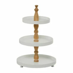 - Fir wood, plywood, and MDF give this tiered serving tray a solid and durable form
