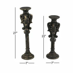 - This set of 2 decorative candlesticks measure 7″L x 7″W x 27″H and 7″L x 7″W x 22″H and collectively weigh 9.05 lbs