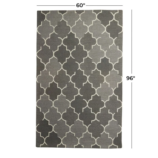 This modern area rug provides an artistic element on your floor while creating warmth under your feet in your living room, bedroom, home office or foyer Beautifully hand crafted area rugs provide a cozy protection to your surface floor. Add a splash of color and design with this rectangular area rug to help balance and fill uneven floor space This item comes shipped in one carton Due to the handmade nature of this item, no two will be alike, there will be slight differences in shape, size, and color.. Suitable for indoor use only. Avoid direct sunlight as it will cause the colors in your area rug to fade over time; place your area rug away from direct sunlight whenever possible. Use rug protectors under the legs of heavy furniture to avoid flattening pile. Rotate your rugs every 3-6 months will protect against uneven wear from foot traffic and furniture weight. Made in India. Modern. This decorative rug for bedroom and living room offers a modern style that represents elegance and versatility. This handmade area rug is crafted from natural wool and cotton material with durable and long-lasting property. This Moroccan designed decorative rug comes in gray tones with white-colored pattern. A hand hooked modern area rug featuring a Moroccan design with neutral grey tone provide a soft touch to your floors that can easily blend into any existing décor. A decorative rug for home with 5′ x 8′ measurements and 5mm thickness