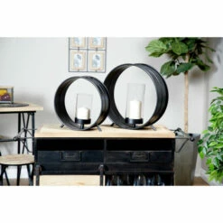 Wholesale 😉 Studio 350 Black Metal Industrial Candle Holder (Set Of 2) – 16 X 6 X 16Round ⌛